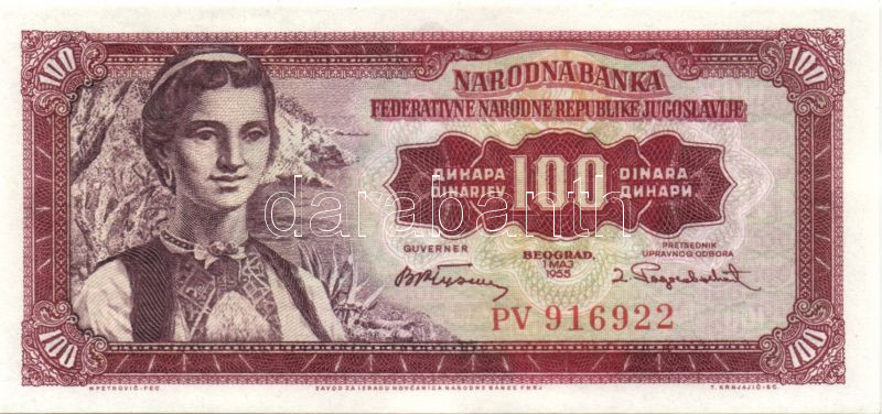 Jugoszlávia 1955. 100D + 1965. 5D T:I https://www.darabanth.com/de/84-Fernauktion/84.0/Numismatik/~327/Jugoszlavia-1955-100D-plus-1965-5D-TI~II179369