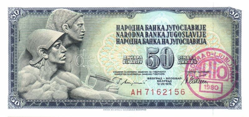 Jugoszlávia 1965-85. 10D, 20D, 50D, 100D, 500D, 1000D, 5000D piros "Be... https://www.darabanth.com/de/84-Fernauktion/84.0/Numismatik/~327/Jugoszlavia-1965-85-10D-20D-50D-100D-500D-1000D-5000D-piros-Belgrad-Lubljana-vasuti-v~II179460