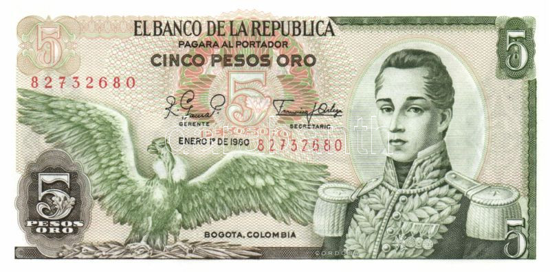 Kolumbia 1980.1.1. 5P T:I https://www.darabanth.com/de/84-Fernauktion/84.0/Numismatik/~327/Kolumbia-198011-5P-TI~II177843