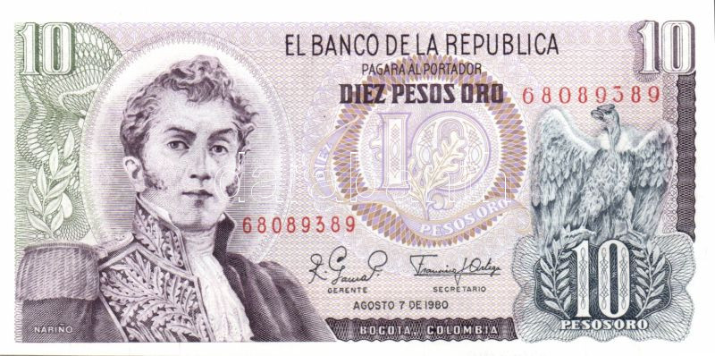 Kolumbia 1980.8.7. 10P T:I https://www.darabanth.com/de/84-Fernauktion/84.0/Numismatik/~327/Kolumbia-198087-10P-TI~II177841