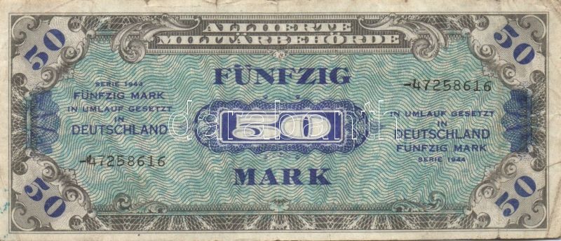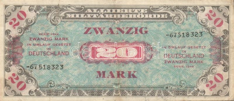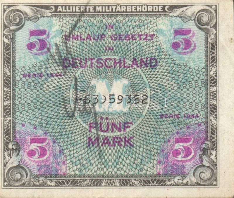 Beschreibung: Német 3. Birodalom/Wehrmacht kiadás (Német Véderő) 1942. 1Rpf (3x) + 1944. Nemzetközi megszállás/szovjet kiadás 5M, 20M, 50M, T:II,III
