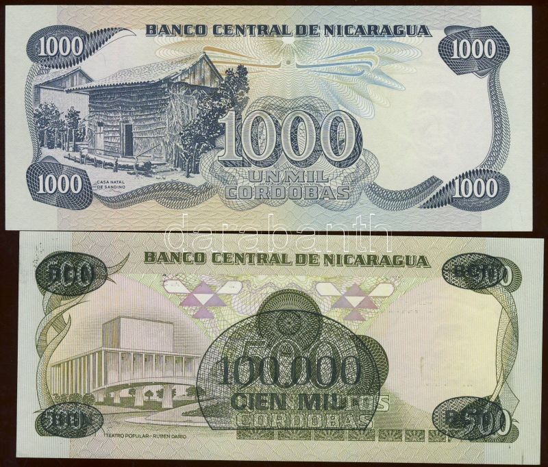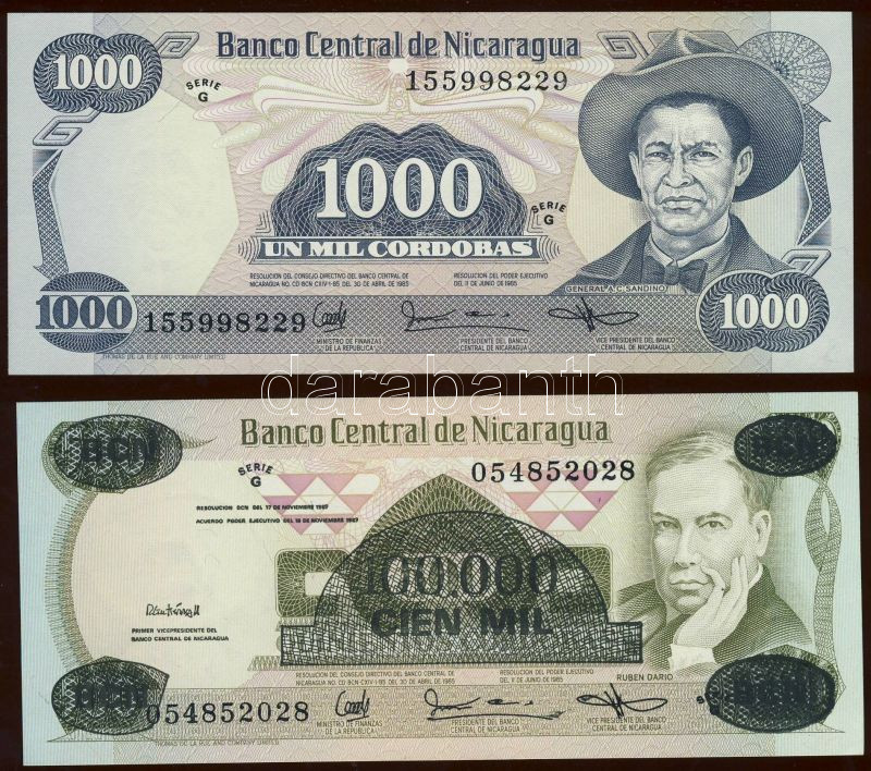 Nicaragua 1985-87. 1000C, 500C 100.000C fny-sal T:I https://www.darabanth.com/de/84-Fernauktion/84.0/Numismatik/~327/Nicaragua-1985-87-1000C-500C-100000C-fny-sal-TI~II178200