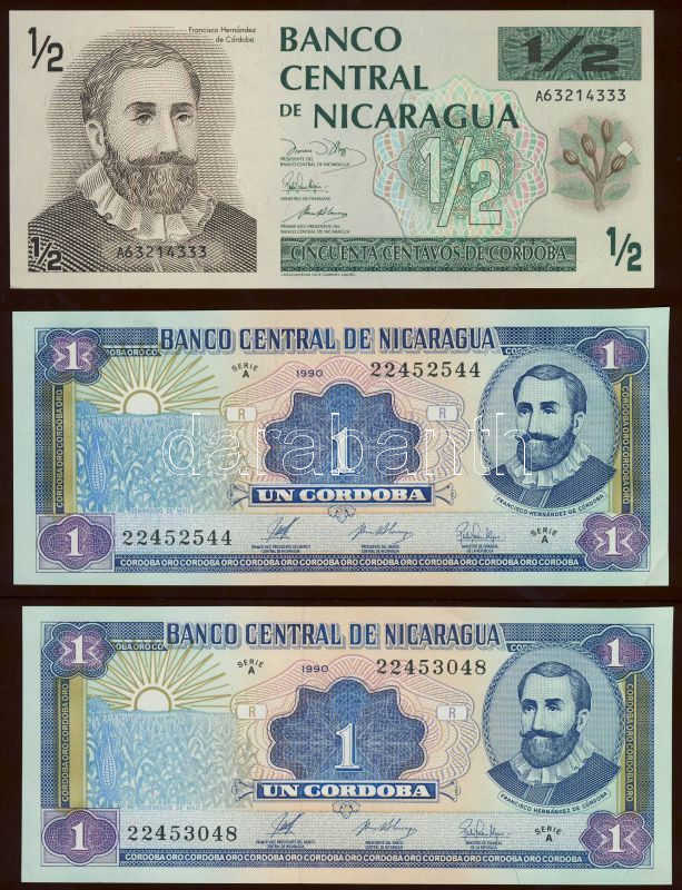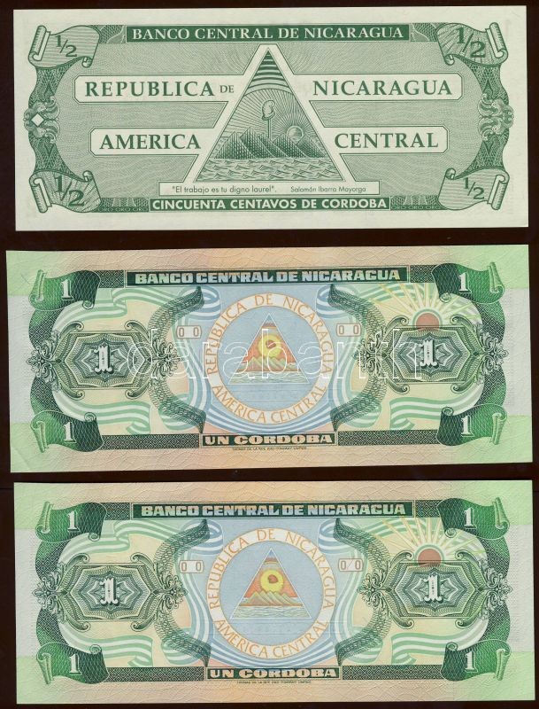 Nicaragua 1990-91. 1/2C, 1C (2x) T:I,I- Egyiken pici saroktörés! https://www.darabanth.com/de/84-Fernauktion/84.0/Numismatik/~327/Nicaragua-1990-91-12C-1C-2x-TI-I-Egyiken-pici-saroktores~II178195