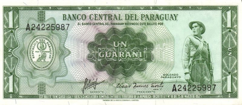 Beschreibung: Paraguay 1952. 1G T:I + 1952(1963-). 1G, 5G "fekete", 10G, 50G, 100G "narancssárga" T:I