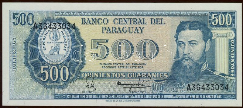 Paraguay 1952(1963). 500G T:I https://www.darabanth.com/de/84-Fernauktion/84.0/Numismatik/~327/Paraguay-19521963-500G-TI~II178216