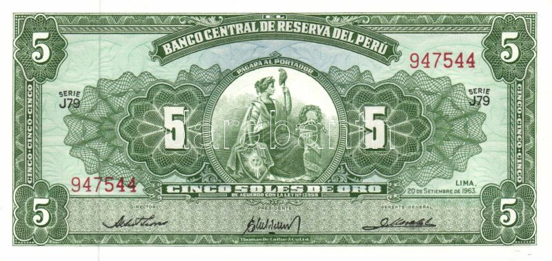 Peru 1963.9.20. 5S T:I- Egyszer hajtva, törve nem! https://www.darabanth.com/de/84-Fernauktion/84.0/Numismatik/~327/Peru-1963920-5S-TI-Egyszer-hajtva-torve-nem~II177556