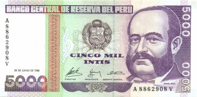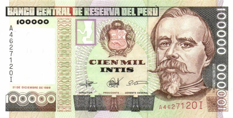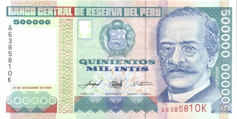 Peru 1986-89. 10I, 50I (2x) klf dátummal, 100I (2x) klf dátummal, 500I, 1000I, 5000I, 10.000I, 50.000I, 100.000I, 500.000I T:I Összesen 12db!