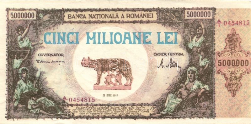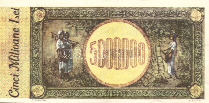 Románia 1947. 1000.000L, 5000.000L hamisítványok T:I https://www.darabanth.com/de/84-Fernauktion/84.0/Numismatik/~327/Romania-1947-1000000L-5000000L-hamisitvanyok-TI~II177724