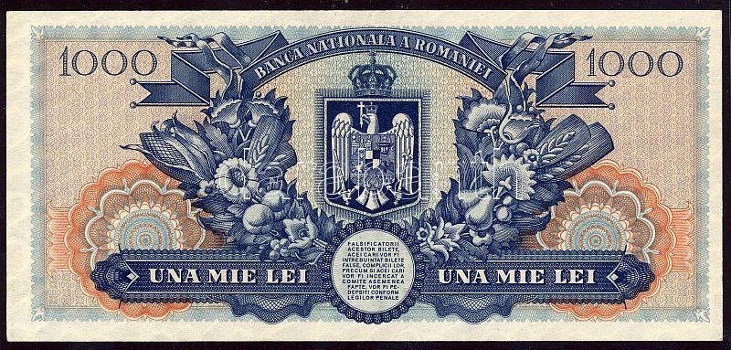 Románia 1947.12.5. 1000L T:I https://www.darabanth.com/de/84-Fernauktion/84.0/Numismatik/~327/Romania-1947125-1000L-TI~II177716
