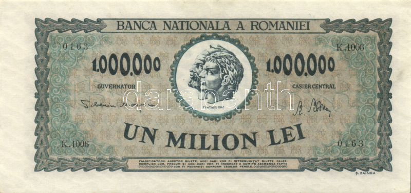 Románia 1947.4.16. 1000.000L T:I https://www.darabanth.com/de/84-Fernauktion/84.0/Numismatik/~327/Romania-1947416-1000000L-TI~II177723