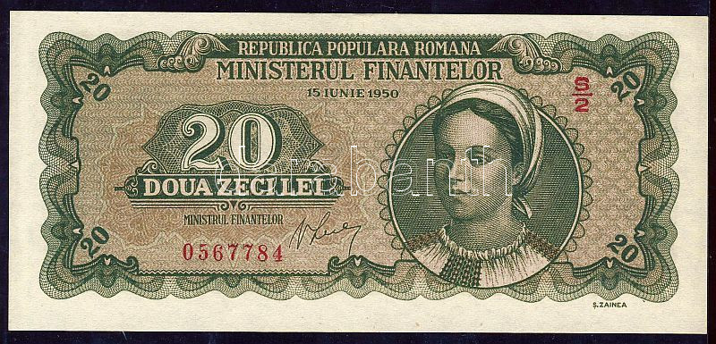 Románia 1950.6.15. 20L T:I https://www.darabanth.com/de/84-Fernauktion/84.0/Numismatik/~327/Romania-1950615-20L-TI~II177719