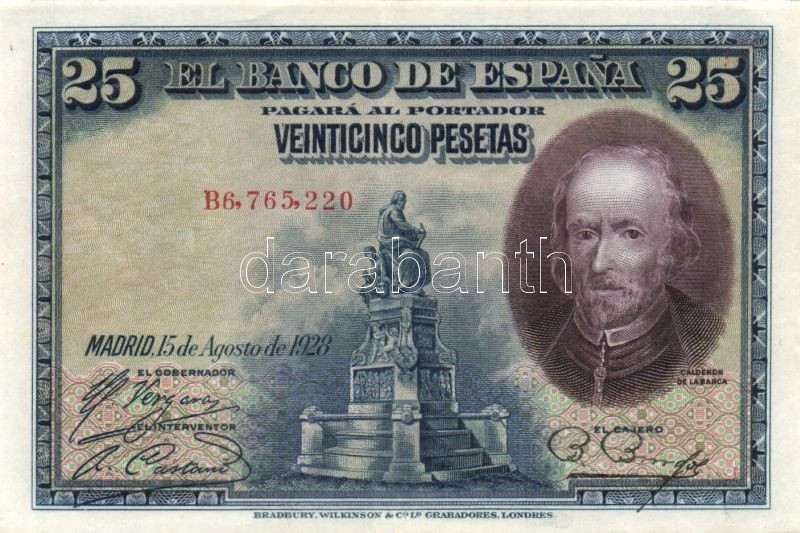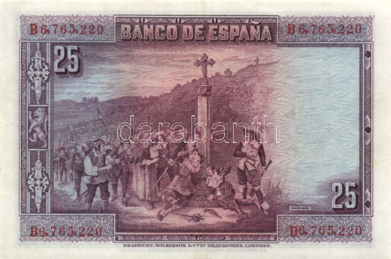 Spanyolország 1928.8.15. 25P T:II+ Csak egyszer hajtva! https://www.darabanth.com/de/84-Fernauktion/84.0/Numismatik/~327/Spanyolorszag-1928815-25P-TIIplus-Csak-egyszer-hajtva~II179037