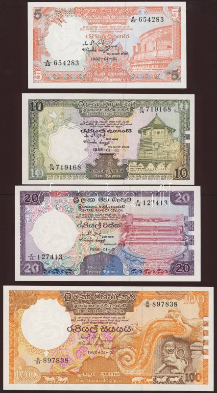 Sri Lanka 1982-1985. 5R, 10R, 20R, 50R, 100R kompl. sor T:I https://www.darabanth.com/de/84-Fernauktion/84.0/Numismatik/~327/Sri-Lanka-1982-1985-5R-10R-20R-50R-100R-kompl-sor-TI~II178467