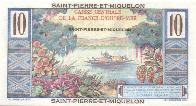 St.Pierre & Miquelon 1950-60. 10Fr T:I https://www.darabanth.com/de/84-Fernauktion/84.0/Numismatik/~327/StPierre-Miquelon-1950-60-10Fr-TI~II177786