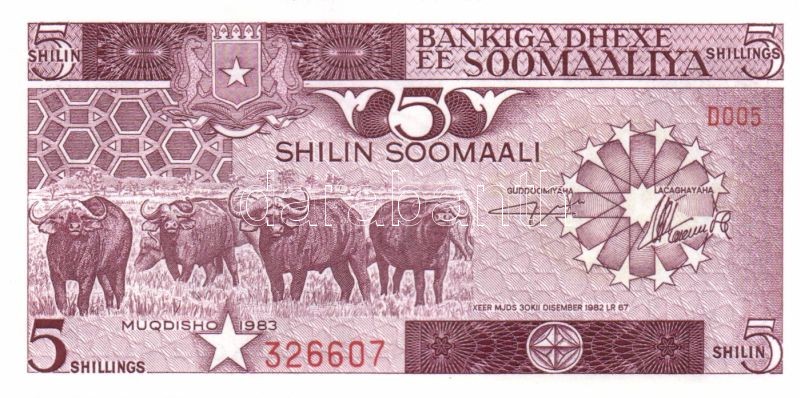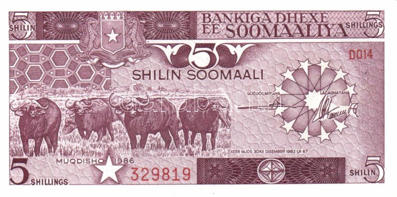 Szomália 1983+1986. 5Sh (2x) klf évszámmal T:I https://www.darabanth.com/de/84-Fernauktion/84.0/Numismatik/~327/Szomalia-1983plus1986-5Sh-2x-klf-evszammal-TI~II178924