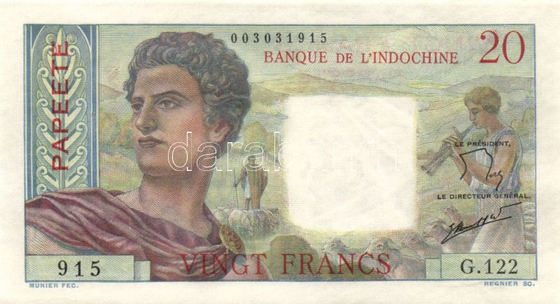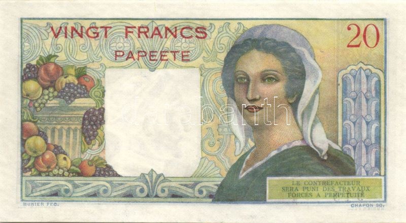 Tahiti/Papeete 1963(1951). 20Fr T:I https://www.darabanth.com/de/84-Fernauktion/84.0/Numismatik/~327/TahitiPapeete-19631951-20Fr-TI~II179082