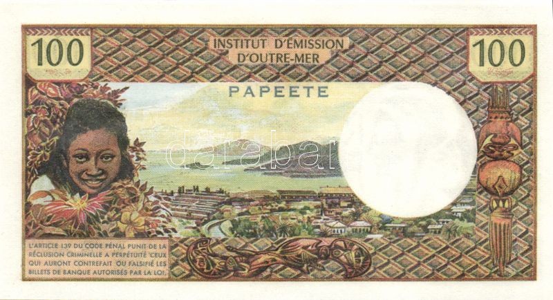 Beschreibung: Tahiti/Papeete 1973. 100Fr T:I