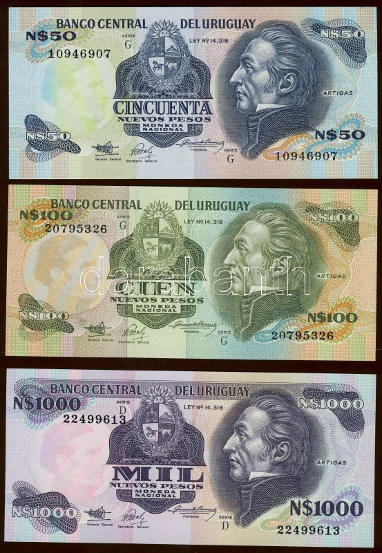 Beschreibung: Uruguay 1987-92. 5NP "G", 10NP "G", 1000NP "D" T:I