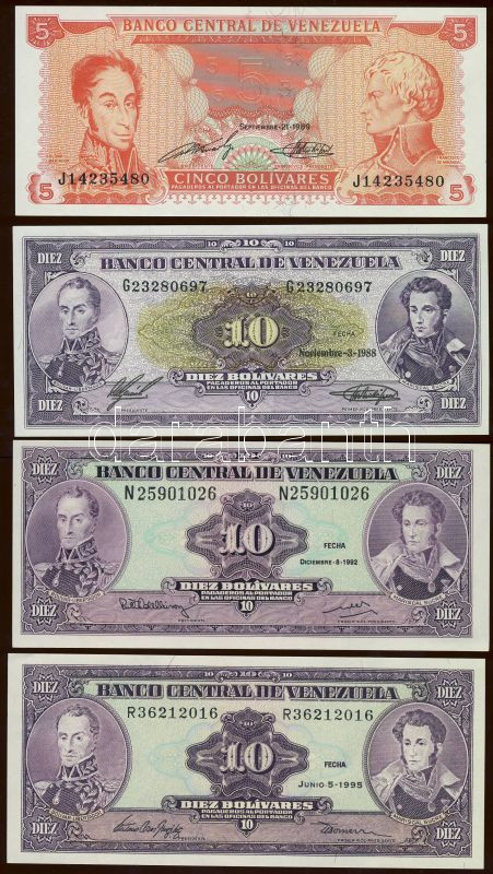 Venezuela 1988-95. 5B, 10B (3x) klf dátummal, 20B, 100B T:I Összesen 6... https://www.darabanth.com/de/84-Fernauktion/84.0/Numismatik/~327/Venezuela-1988-95-5B-10B-3x-klf-datummal-20B-100B-TI-Osszesen-6db-bankjegy~II178293