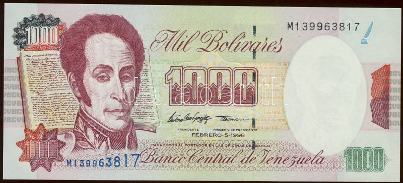 Venezuela 1998.2.5. 1000B T:I https://www.darabanth.com/de/84-Fernauktion/84.0/Numismatik/~327/Venezuela-199825-1000B-TI~II178270