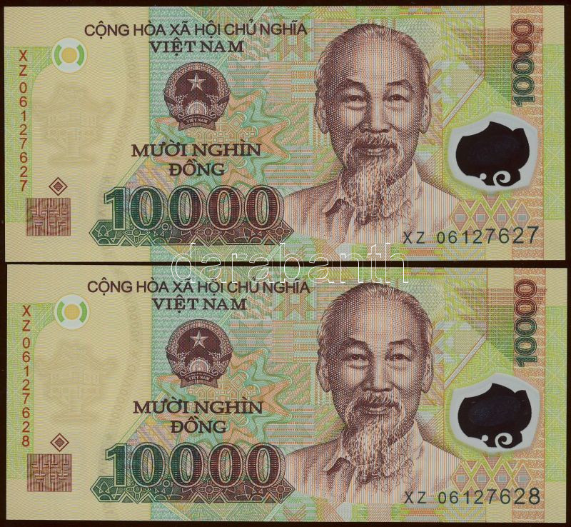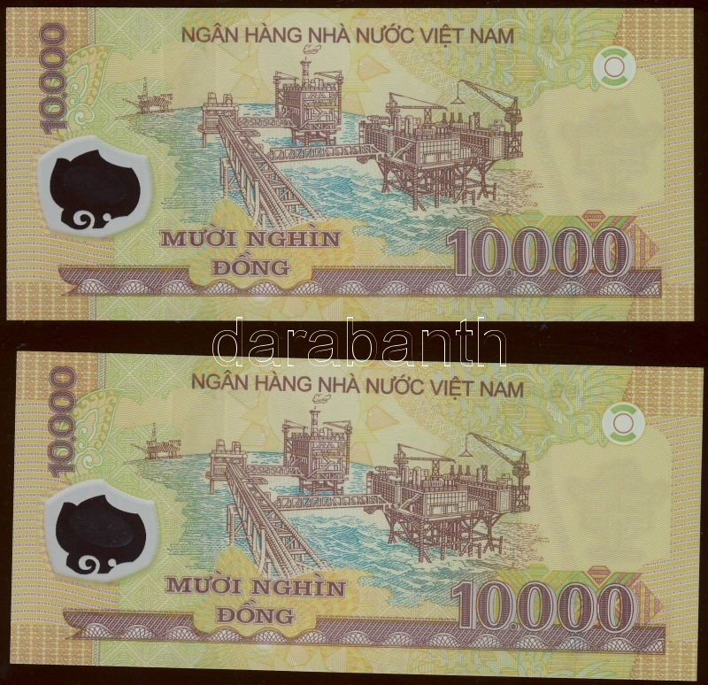 Beschreibung: Vietnam dátum nélkül 10.000D (2x) egymásutáni sorszámokkal, feltehetően nem kiadott bankjegyek! T:I