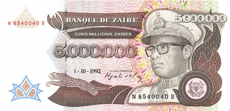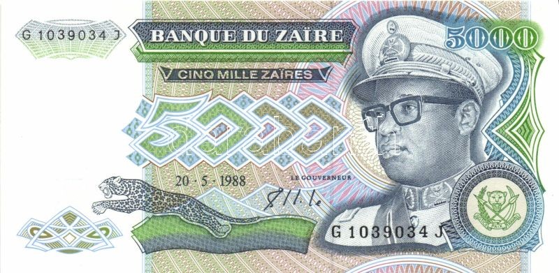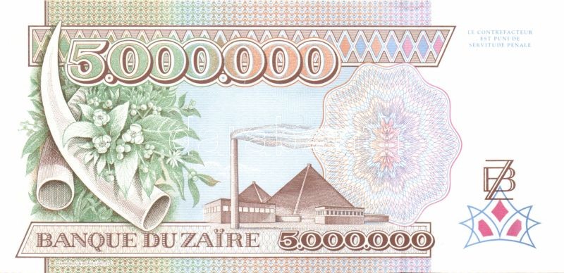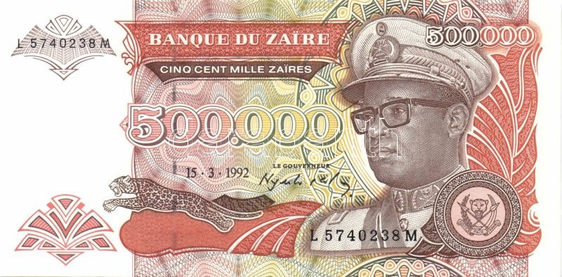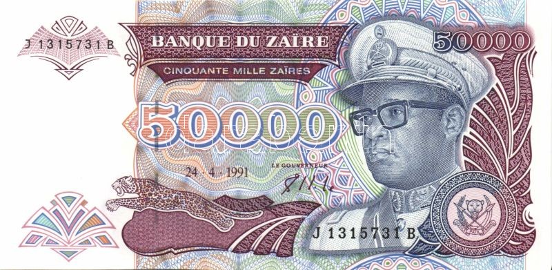 Zaire 1988-92. 50Z, 100Z, 500Z, 2000Z, 5000Z, 10.000Z, 20.000Z, 50.000Z, 100.000Z, 200.000Z, 500.000Z, 1000.000Z, 5000.000Z sor T:I
