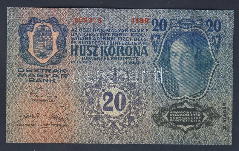 Beschreibung: 1913. 20K piros "Deutschösterreich" fny-sal T:I-