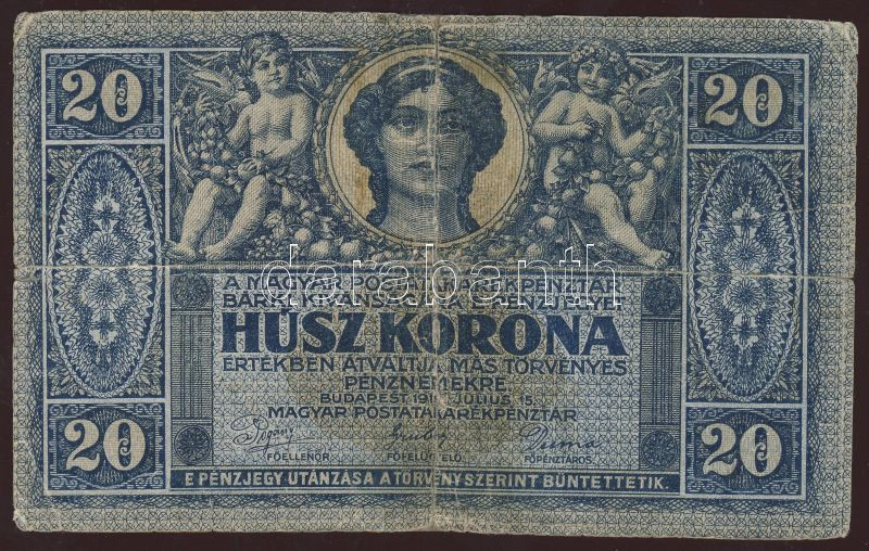 1919. július 15. 20K T:IV https://www.darabanth.com/de/84-Fernauktion/84.0/Numismatik/~328/1919-julius-15-20K-TIV~II178790