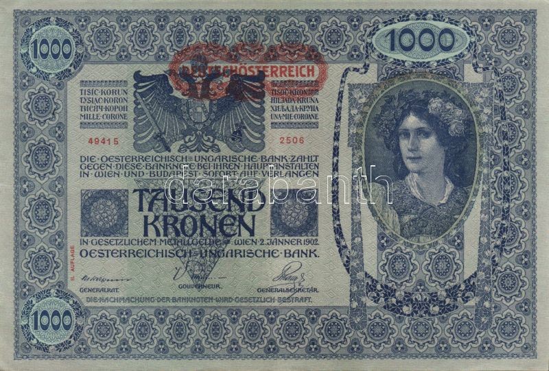 1920. 1K + 2K T:I- + 1902. 1000K Osztrák-magyar Bank T:II + 1945. 1000... https://www.darabanth.com/de/84-Fernauktion/84.0/Numismatik/~328/1920-1K-plus-2K-TI-plus-1902-1000K-Osztrak-magyar-Bank-TII-plus-1945-100000P-TIIplus-plus-1946-100000AP-fe~II179792