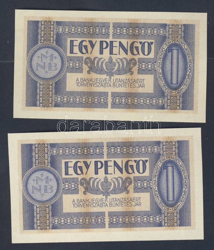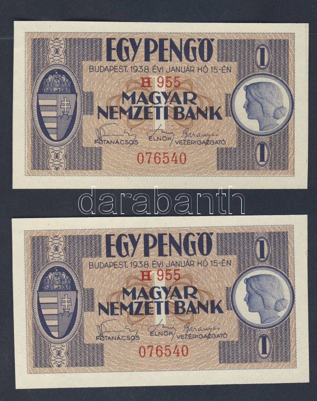 1938. 1P(2x) azonos sorozat és sorszámú bankjegyek T:I RR! Csak néhány... https://www.darabanth.com/de/84-Fernauktion/84.0/Numismatik/~328/1938-1P2x-azonos-sorozat-es-sorszamu-bankjegyek-TI-RR-Csak-nehany-ivet-nyomtak-beloluk~II178803