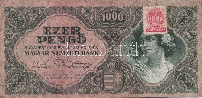 1945. 1000 lemezhibás bélyeggel + 10000P lemezhibás bélyeggel T:II+,II https://www.darabanth.com/de/84-Fernauktion/84.0/Numismatik/~328/1945-1000-lemezhibas-belyeggel-plus-10000P-lemezhibas-belyeggel-TIIplus-II~II179489