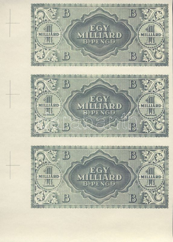 1946. 1000.000.000B.-pengő "zöld" bal alsó ívszéli 3-as függőleges csí... https://www.darabanth.com/de/84-Fernauktion/84.0/Numismatik/~328/1946-1000000000B-pengo-zold-bal-also-ivszeli-3-as-fuggoleges-csikban-3db-illesztoker~II175800