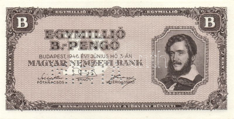 1946. 1000000BP "Minta" perforációval T:I https://www.darabanth.com/de/84-Fernauktion/84.0/Numismatik/~328/1946-1000000BP-Minta-perforacioval-TI~II179825