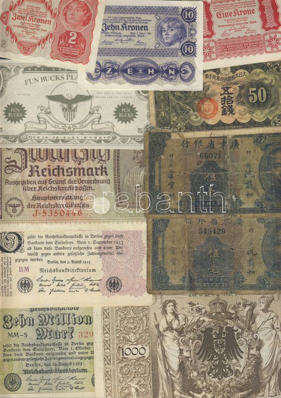 Érdekes hagyaték tétel régi és új 63db magyar korona, pengő, forint benne jobbak, többek között 1949. 10Ft, 100Ft + 3db Osztrák-Magyar Bank + 1db amerikai játékpénz + 12db Német Birodalom jobbakkal + 3db Kína összessen 79klf! db T:II