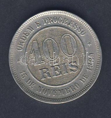 Brazília 1889. 100R T:2/3 https://www.darabanth.com/de/84-Fernauktion/84.0/Numismatik/~332/Brazilia-1889-100R-T23~II179606