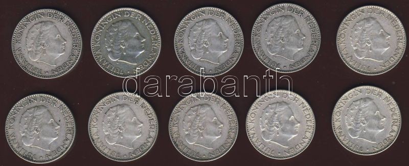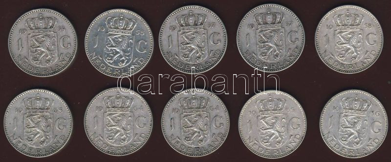 Hollandia 1954-1966. 1G Ag (10x) vegyes évszámokkal T:2,2/3 https://www.darabanth.com/de/84-Fernauktion/84.0/Numismatik/~332/Hollandia-1954-1966-1G-Ag-10x-vegyes-evszamokkal-T2-23~II179523