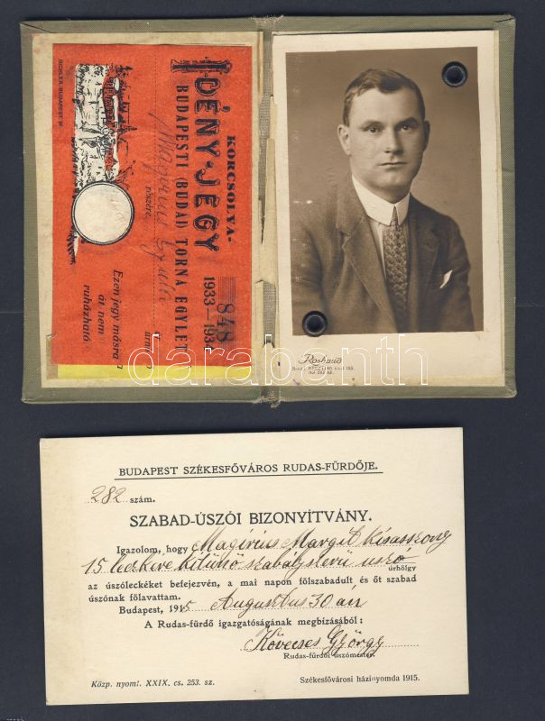 Beschreibung: Műkorcsolya idényjegy 1933-1934 + Szabadúszó igazolvány 1915