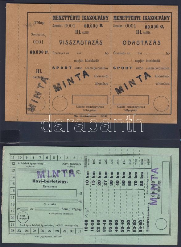 1930-57. 14db MÁV bérlet, menetjegy, szabadjegy, mindegyik "MINTA" fny... https://www.darabanth.com/de/85-Fernauktion/85.0/Andere-Sammelgebiete/~433/1930-57-14db-MAV-berlet-menetjegy-szabadjegy-mindegyik-MINTA-fny-sal~II174500