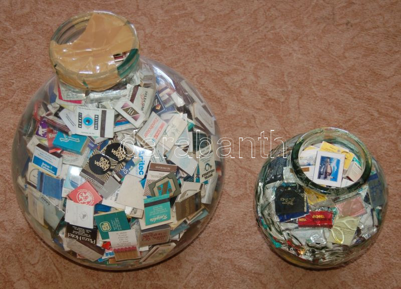 Beschreibung: Több száz, esetleg 1000db vagy több külföldi gyufásdoboz (gyufával!), két óriási, érdekes üvegben!