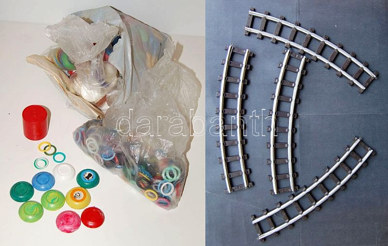 Beschreibung: Modellvasúthoz tartozó sínek + Gombfoci készlet