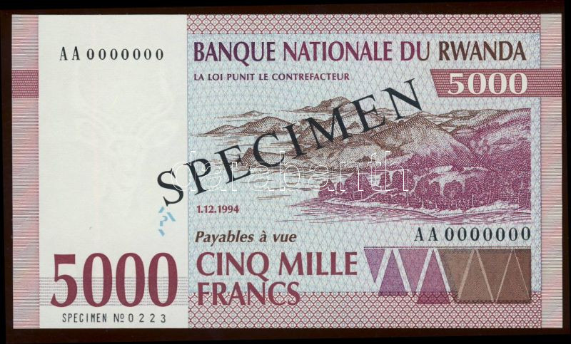 Ruanda 1994. 5000Fr "SPECIMEN 000" T:I https://www.darabanth.com/de/85-Fernauktion/85.0/Numismatik/~530/Ruanda-1994-5000Fr-SPECIMEN-000-TI~II178210