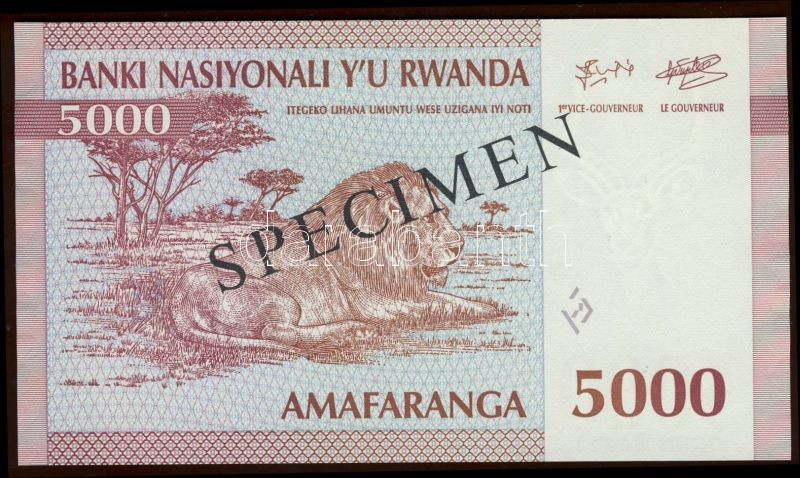 Beschreibung: Ruanda 1994. 5000Fr "SPECIMEN 000" T:I