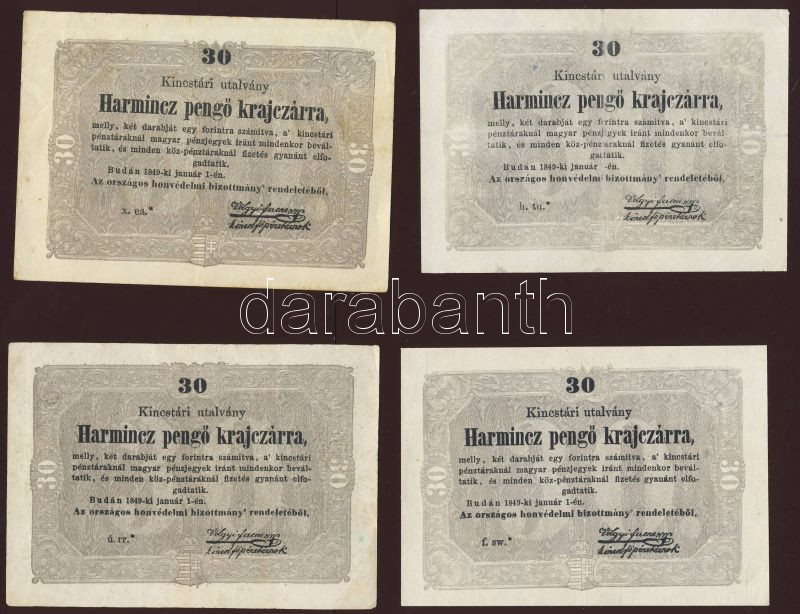 Beschreibung: 1849. 30kr *-gal "Kossuth bankó" (4x) T:restaurált