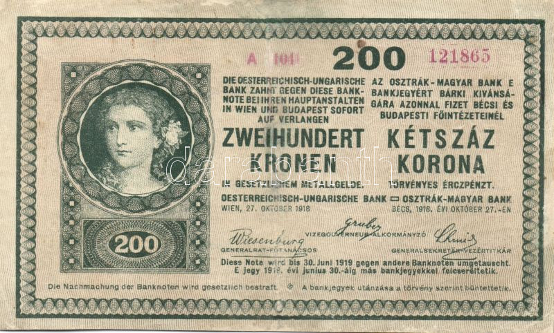 Beschreibung: 1918. 200K "hullámos" hátlap T:restaurált