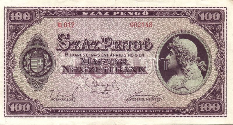 1945. 100P(2x) lemezhiba nélküli (drágább változat) ügyes hamisítványo... https://www.darabanth.com/de/85-Fernauktion/85.0/Numismatik/~531/1945-100P2x-lemezhiba-nelkuli-dragabb-valtozat-ugyes-hamisitvanyok-TII-II~II179497