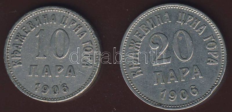 Montenegro 1906. 10P, 20P T:3 kis ph. https://www.darabanth.com/de/85-Fernauktion/85.0/Numismatik/~540/Montenegro-1906-10P-20P-T3-kis-ph~II179578