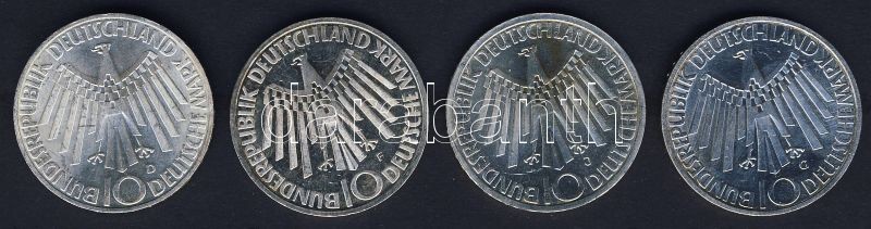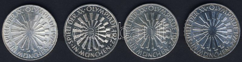 NSZK 1972. 10M Ag (4x) "Olimpia-Spirál-München" komplett verdejel-sor ... https://www.darabanth.com/de/85-Fernauktion/85.0/Numismatik/~540/NSZK-1972-10M-Ag-4x-Olimpia-Spiral-Munchen-komplett-verdejel-sor-TBU~II183628