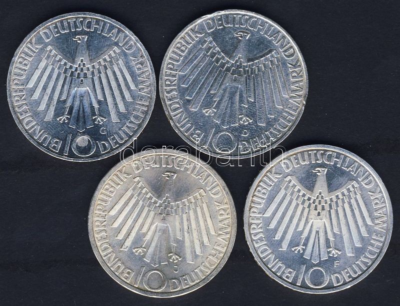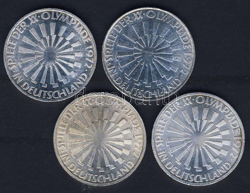 NSZK 1972. 10M Ag (4x) "Olimpia-Spirál-Németország" komplett verdejel-... https://www.darabanth.com/de/85-Fernauktion/85.0/Numismatik/~540/NSZK-1972-10M-Ag-4x-Olimpia-Spiral-Nemetorszag-komplett-verdejel-sor-TBU~II183629