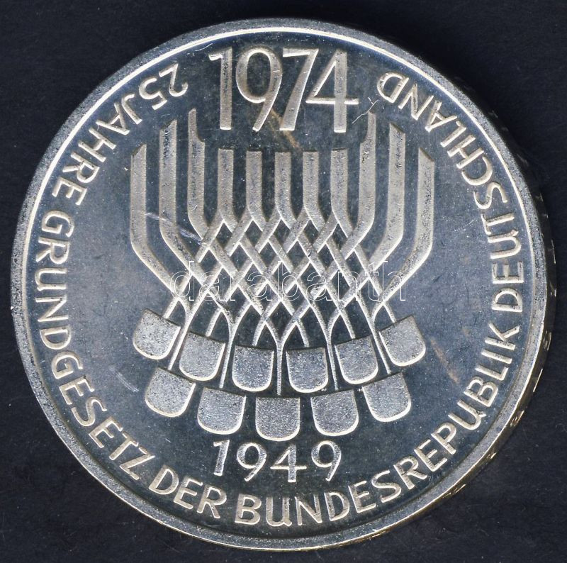 NSZK 1974. 5M Ag "25 éves az Alkotmány" T:BU https://www.darabanth.com/de/85-Fernauktion/85.0/Numismatik/~540/NSZK-1974-5M-Ag-25-eves-az-Alkotmany-TBU~II183665