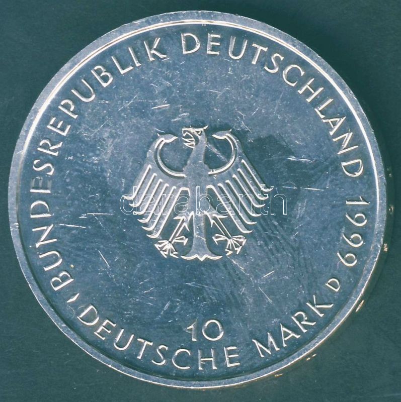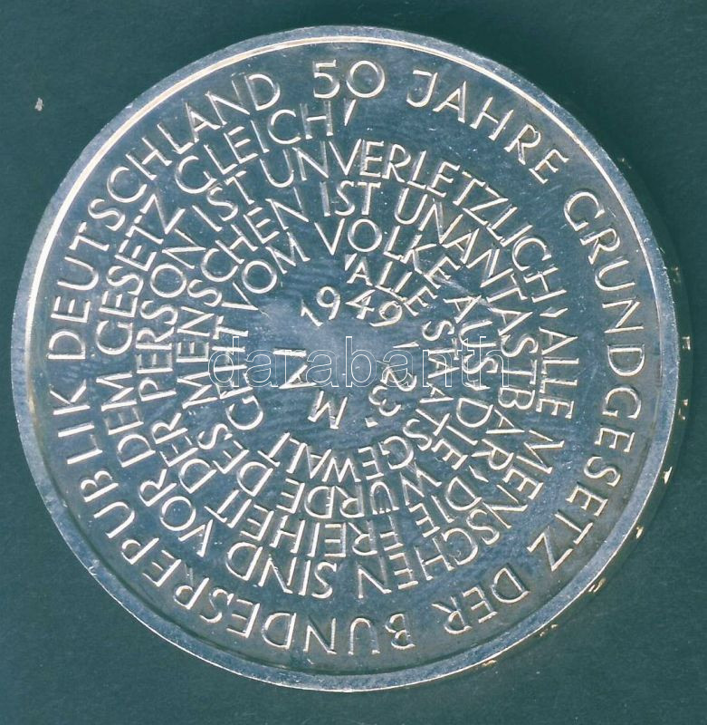 NSZK 1999. 10M Ag "50 éves Alkotmány" T:BU https://www.darabanth.com/de/85-Fernauktion/85.0/Numismatik/~540/NSZK-1999-10M-Ag-50-eves-Alkotmany-TBU~II183622